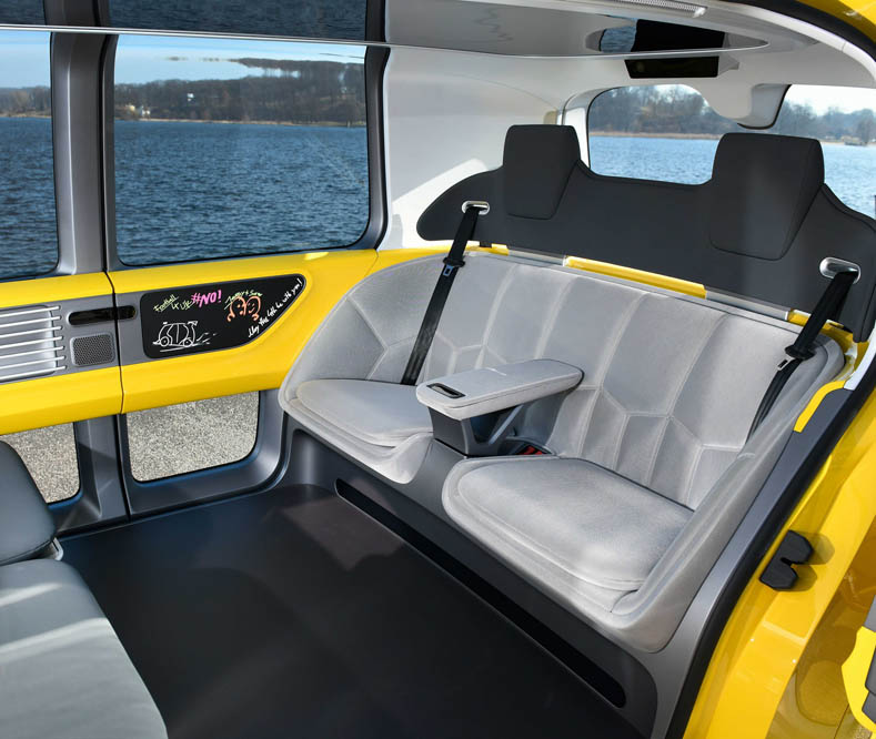 Este es un prototipo que está basado en el Sedric Concept que conocimos justamente hace un año, su nombre proviene de “Self Driving Car” solamente que ahora lo imaginaron como un autobús escolar.